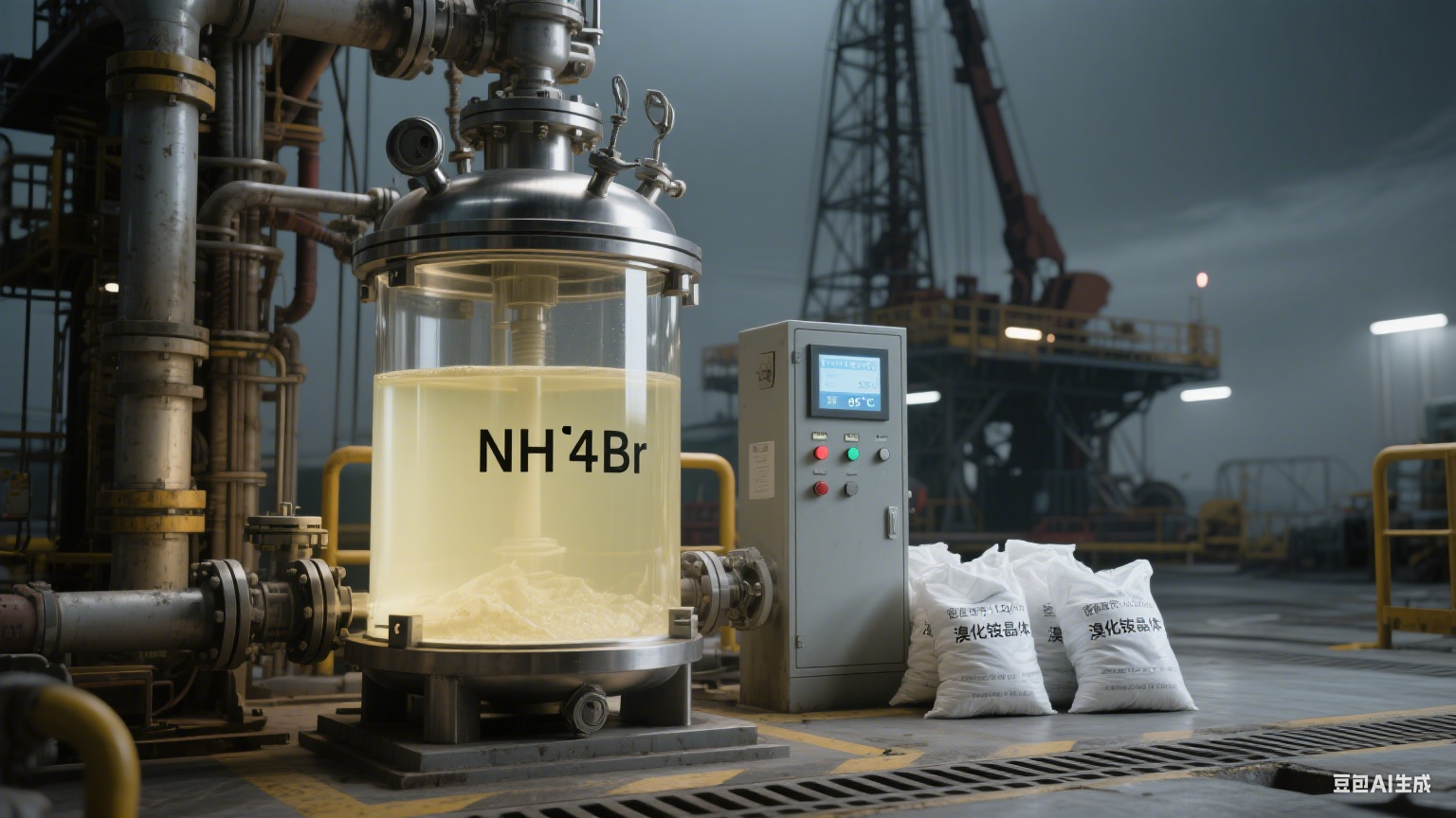 在石油鉆探行業,溴化銨作為鉆井液和完井液的成分之一,發揮著重要作用。鉆井液的功能之一是增加液體的密度,以穩定井壁、減少鉆井過程中產生的壓力,并防止井壁塌陷。溴化銨能夠在高溫高壓環境下保持液體的穩定性,提高鉆井作業的效率。
